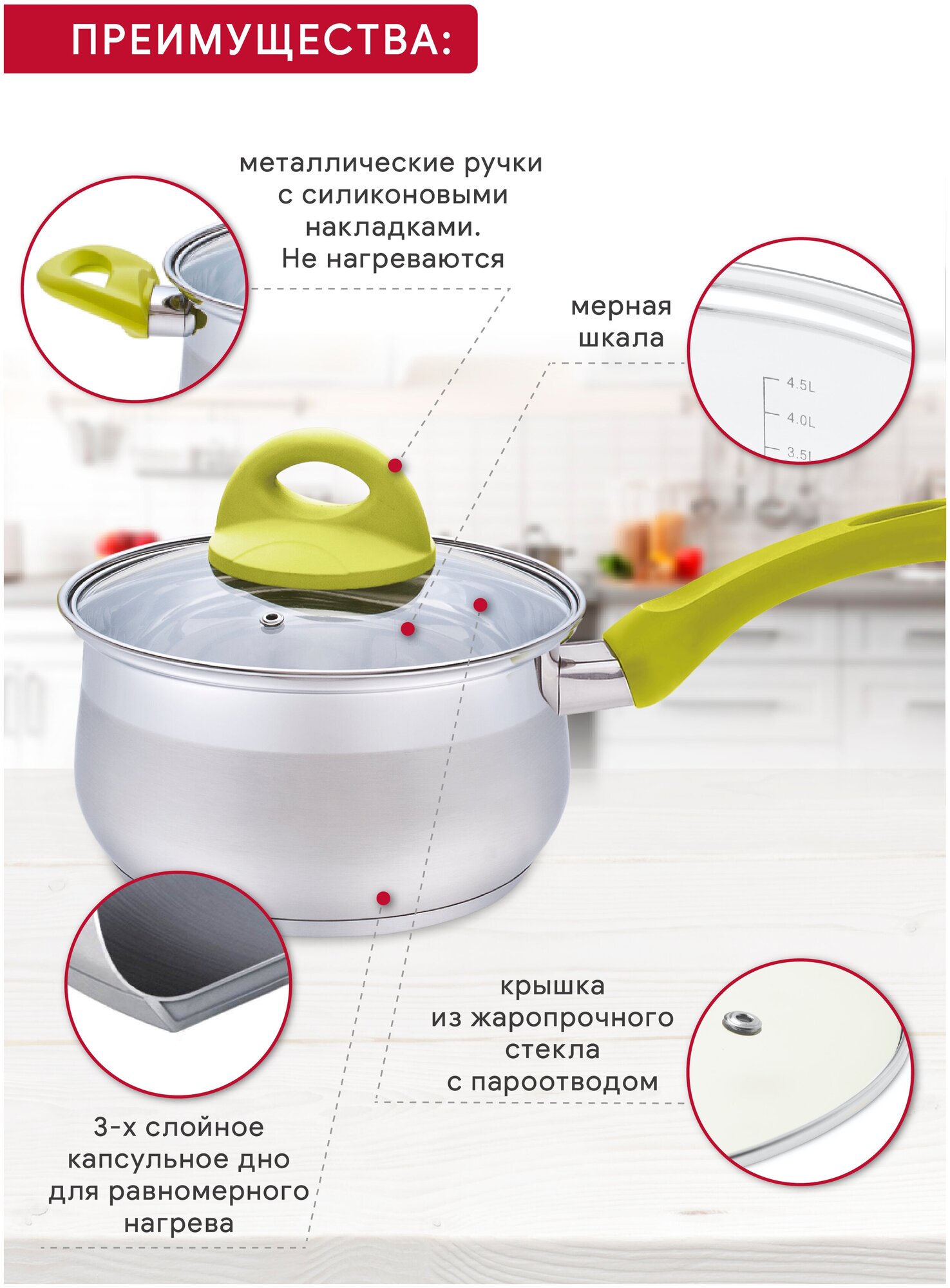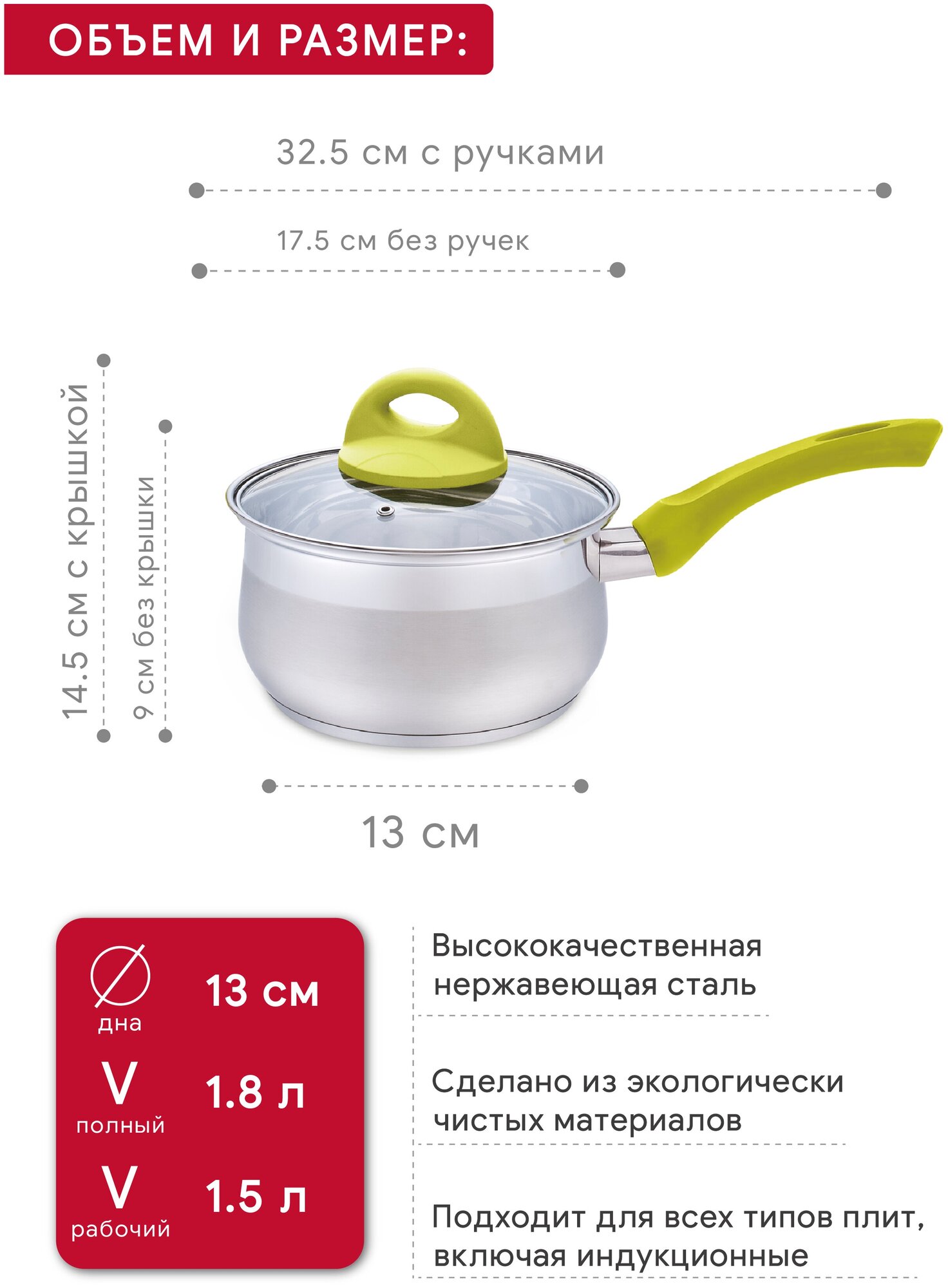 Лучшие цены. Тип: ковш; Материал: сталь; Совместимость с индукционными плитами: есть; Особенности: мытье в посудомоечной машине, использование в духовке, ненагревающаяся ручка, крышка в комплекте; Объем: 1.8 л; Диаметр верха: 16 см; Можно мыть в посудомоечной машине: да; Крышка в комплекте: есть. Магазины в вашем городе.