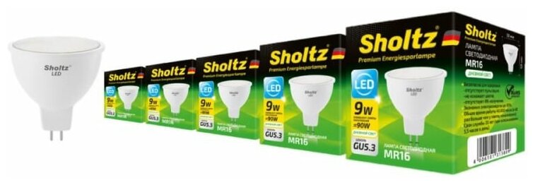 Лампочка Sholtz Комплект из 5 светодиодных ламп MR16 9Вт GU5.3 4000К 220В пластик LMR3138P