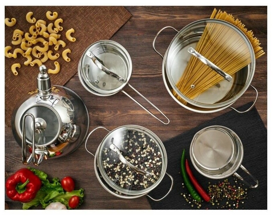 Лучшие цены. Кастрюля серии Glasgow изготовлена из высококачественной нержавеющей стали марки AISI 201 (российский аналог 16/1). Посуда из нержавеющей стали гигиенична, безопасна и прослужит долгие годы. Кастрюля имеет крепкий и надежный корпус. Толщина стенок 0,5 мм, толщина дна 3 мм. Дно у кастрюли имеет специальную трехслойную конструкцию из спрессованных металлических пластин: слой нержавеющей стали, слой алюминия, слой нержавеющей стали. Такая конструкция гарантирует отличные потребительские свойства. Магазины в вашем городе.