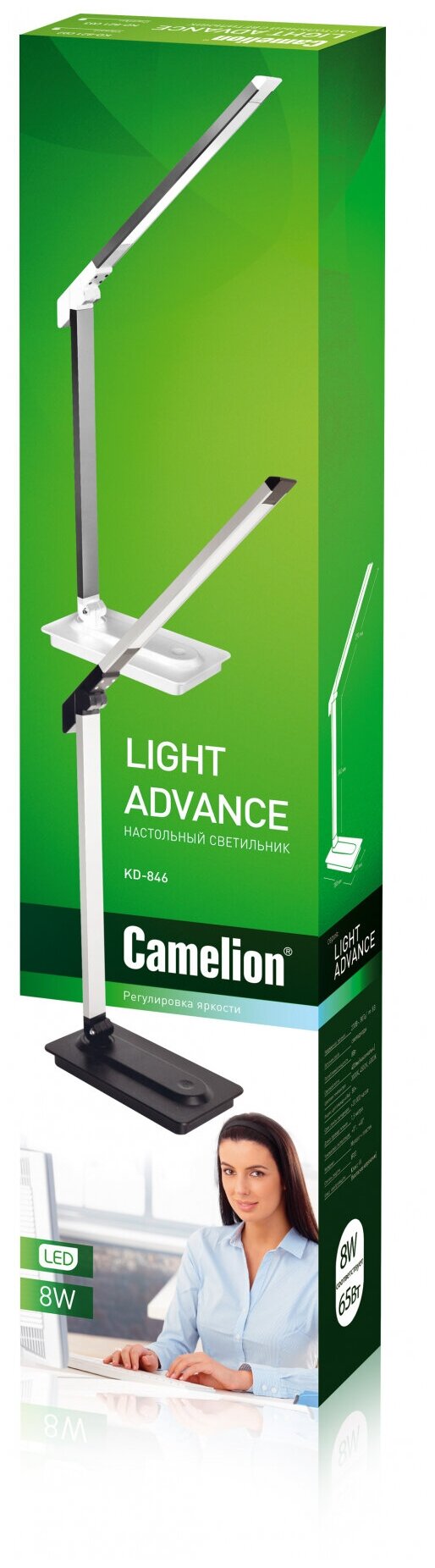 Настольный светодиодный светильник 8,5Вт с функцией регулировки яркости размер 65х380х330мм (3000/4500/6000К) (цвет серебро + белый) - KD-845 (Camelion) (код заказа 14152 С) 1 500 ₽ Подробнее