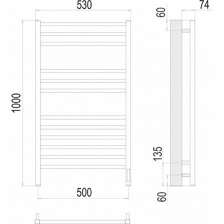 Полотенцесушитель TERMINUS Ватикан П12 (530х1000) электрический, sensor quick touch, 160Вт
