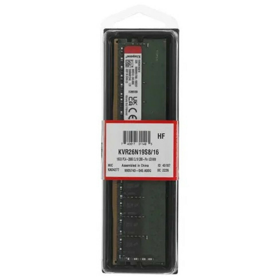 Модуль оперативной памяти Kingston Модуль оперативной памяти 16ГБ DDR4 SDRAM Kingston ValueRAM KVR26N19S8/16 (PC21300, 2666МГц, CL19) (ret)