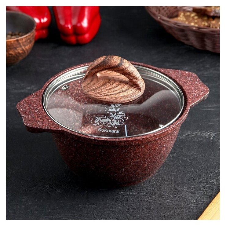 Кастрюля Kukmara Granit ultra кга12а литая 1л стеклянная крышка антипригарное покрытие red