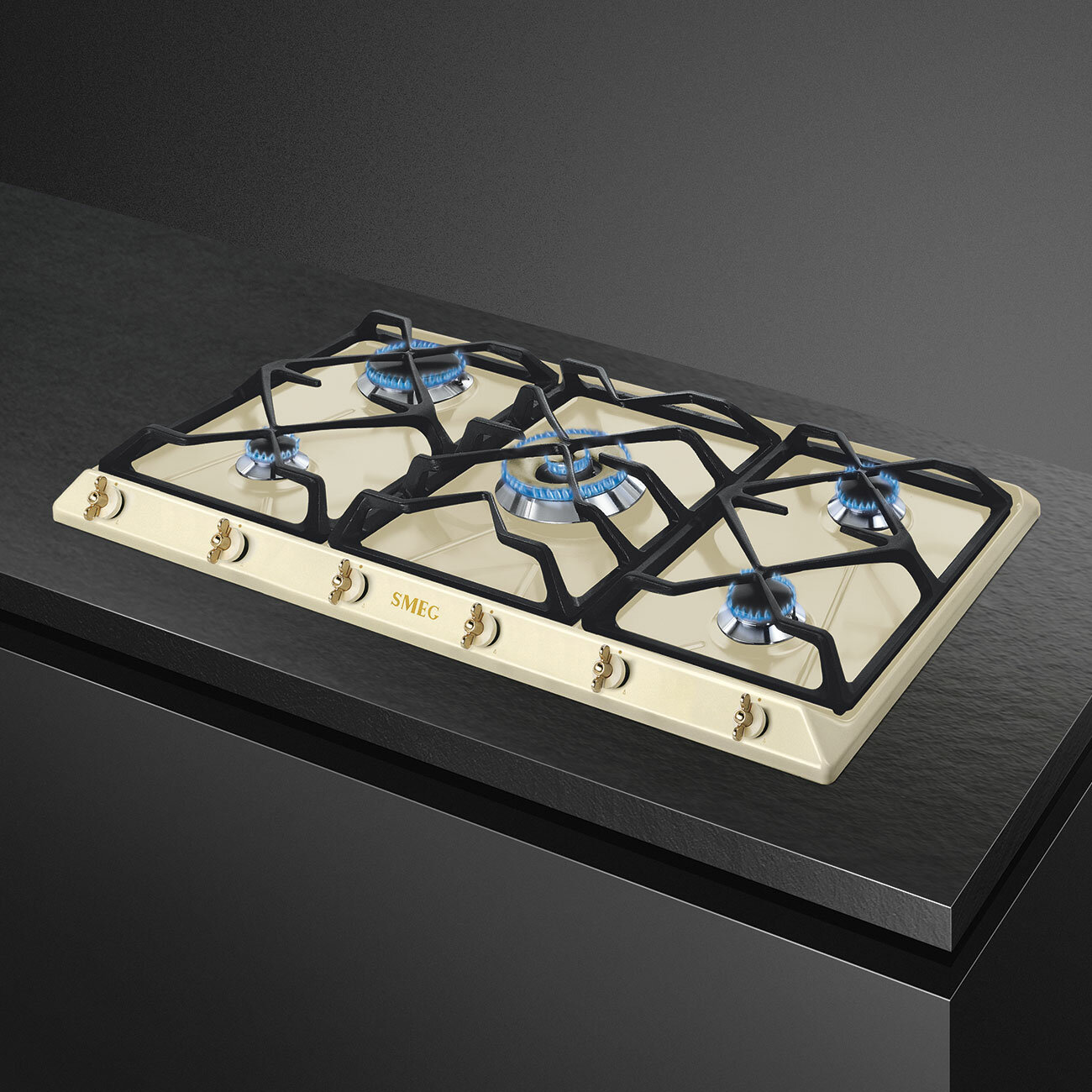 Газовая варочная панель, 90 см, Кремовый Smeg SRV896POGH