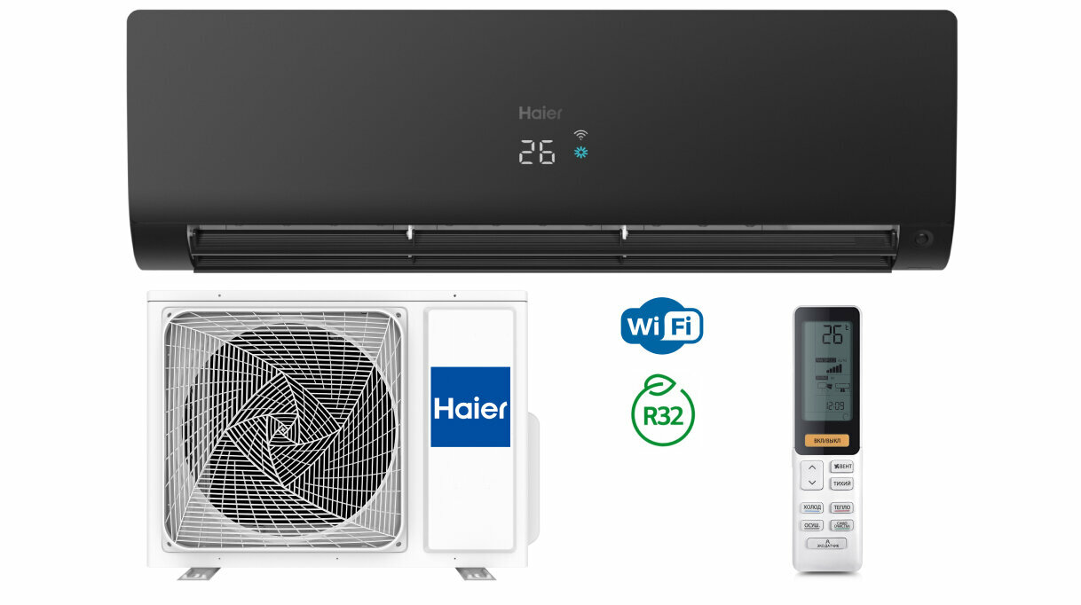 Кондиционеры Кондиционер настенный инверторный Haier Flexis Super Match AS25S2SF1FA-B / 1U25S2SM2FA , черный