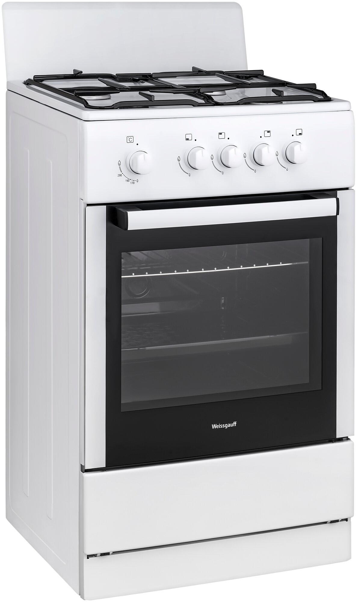Лучшие цены. Газовая отдельностоящая плита Weissgauff шириной всего 50 см, обладающая впечатляющим объемом 50 литров духовой камеры с функцией газ-контроля, а также 4 высокоэффективными конфорками рабочей поверхности со специальным щитком для защиты вашей кухни - это функциональная и практичная бытовая техника. Ширина 50 см делает данную плиту гораздо более компактной, ведь мы в Weissgauff знаем, как важна в бытовой технике не только функциональность, но и удобство её размещения в доме. Магазины в вашем городе.