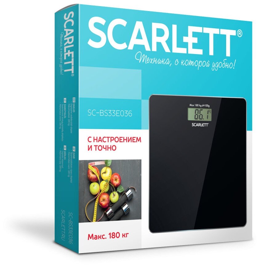 Весы SCARLETT SC-BS33E036, напольные, 180кг, черный