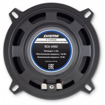 Колонки автомобильные Digma DCA-A502 (без решетки) 140Вт 90дБ 4Ом 13см (5дюйм) (ком.:2кол.) коаксиальные двухполосные
