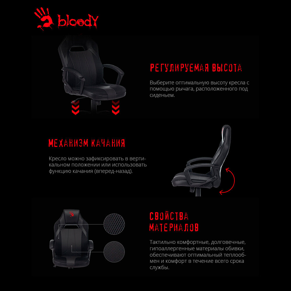 Лучшие цены. Кресло игровое A4Tech Bloody GC-130 эко.кожа крестов., 1596531 — характеристики, отзывы, обзоры, фотографии. Магазины в вашем городе.