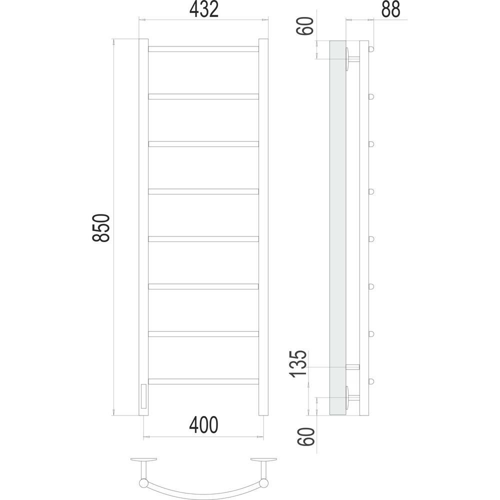 Классик (скрытая проводка слева) электрический полотенцесушитель TERMINUS (432 мм / 850 мм / 400 мм)
