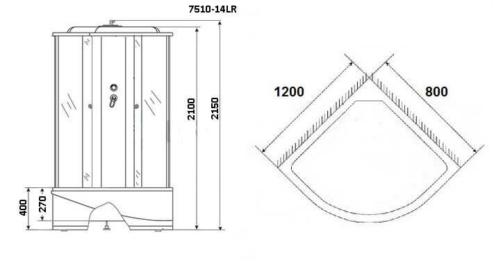 | Функции | гидромассаж вертикальный / верхний душ (тропический) / турецкая баня / подсветка / вентиляция |
