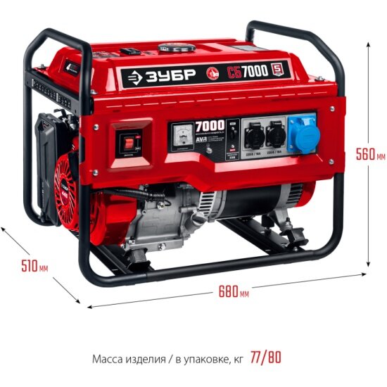 Бензиновый генератор Зубр СБ-7000, 220 В, 7кВт