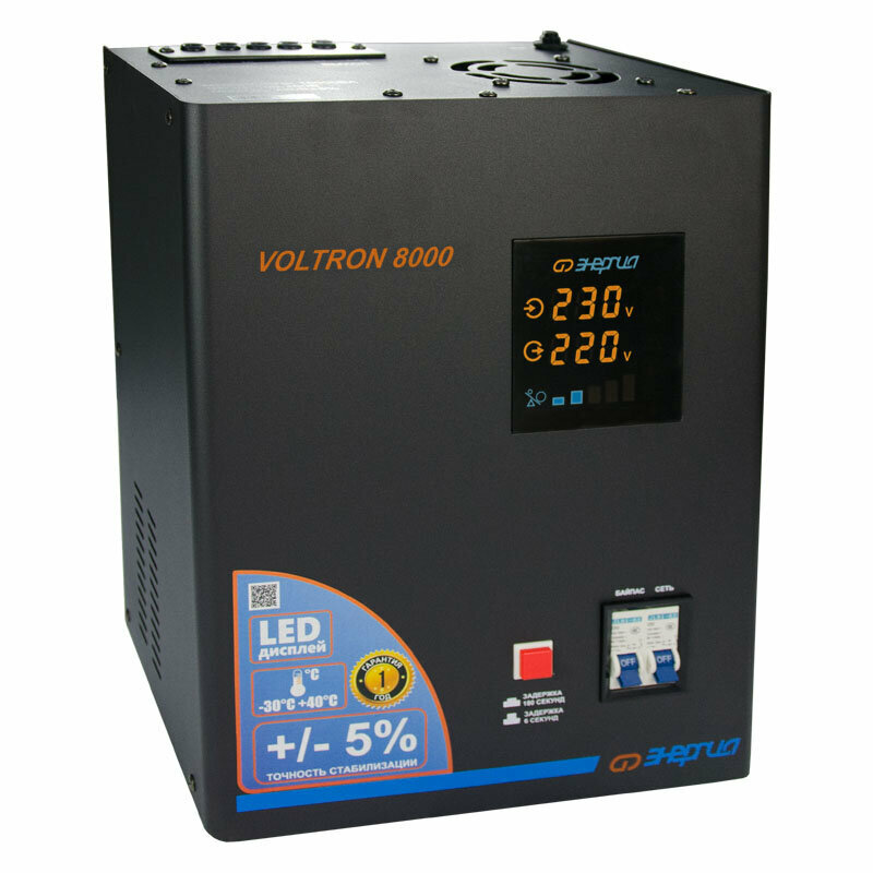 Стабилизатор Энергия Voltron 8000 по точности: 105-265В по защите: 95-280В Е0101-0159 .