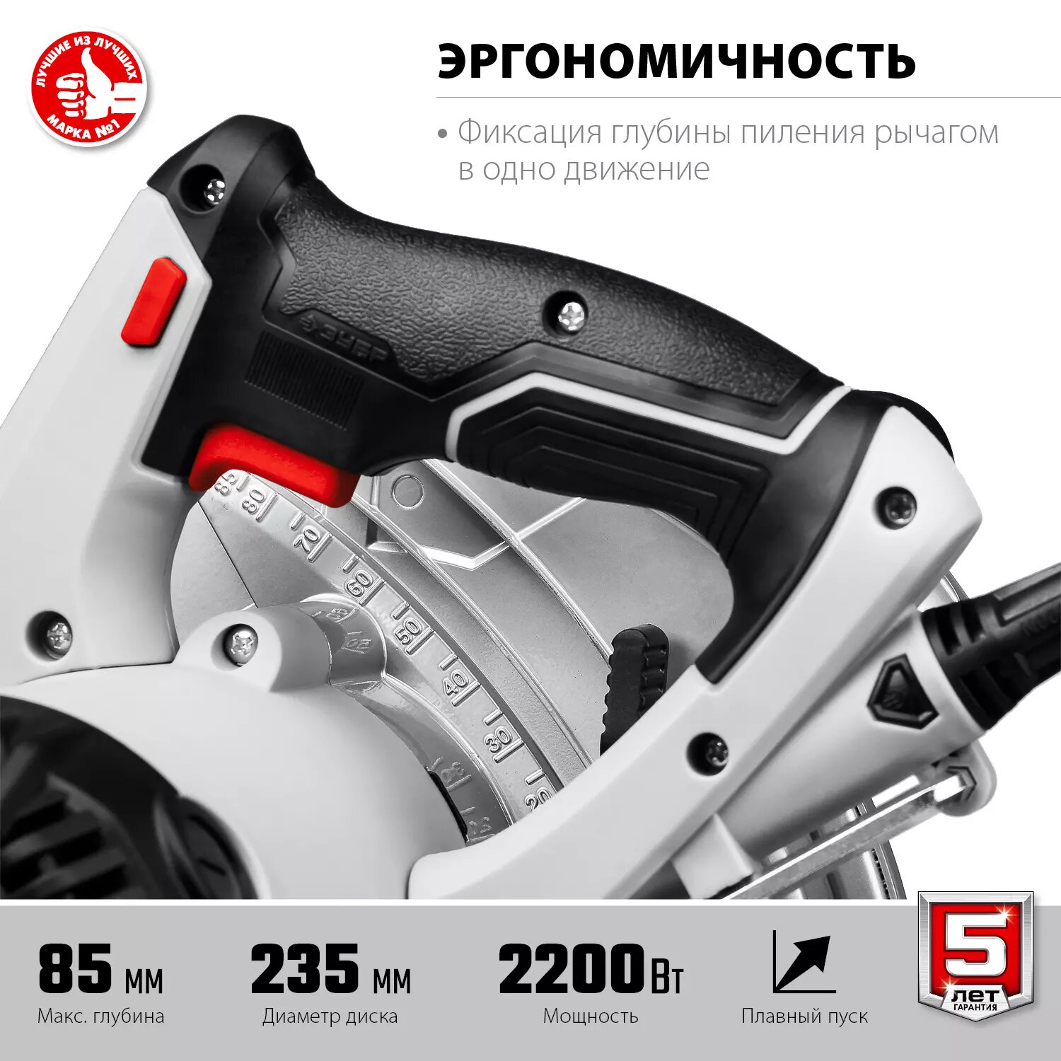 ЗУБР d 235 мм, 2200 Вт, циркулярная пила (дисковая) (ПД-85)