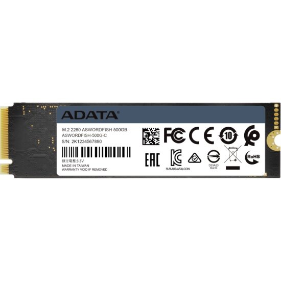 SSD-накопители SSD диск ADATA SWORDFISH M.2 2280 500 Гб PCIe 3.0 x4 (NVMe) 3D TLC (ASWORDFISH-500G-C)