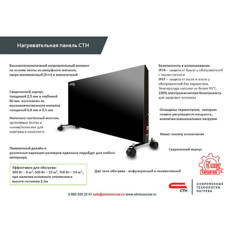 Конвекторы Электронагревательная панель СТН 700 Вт с мех. терморегулятором чёрная (колесики)