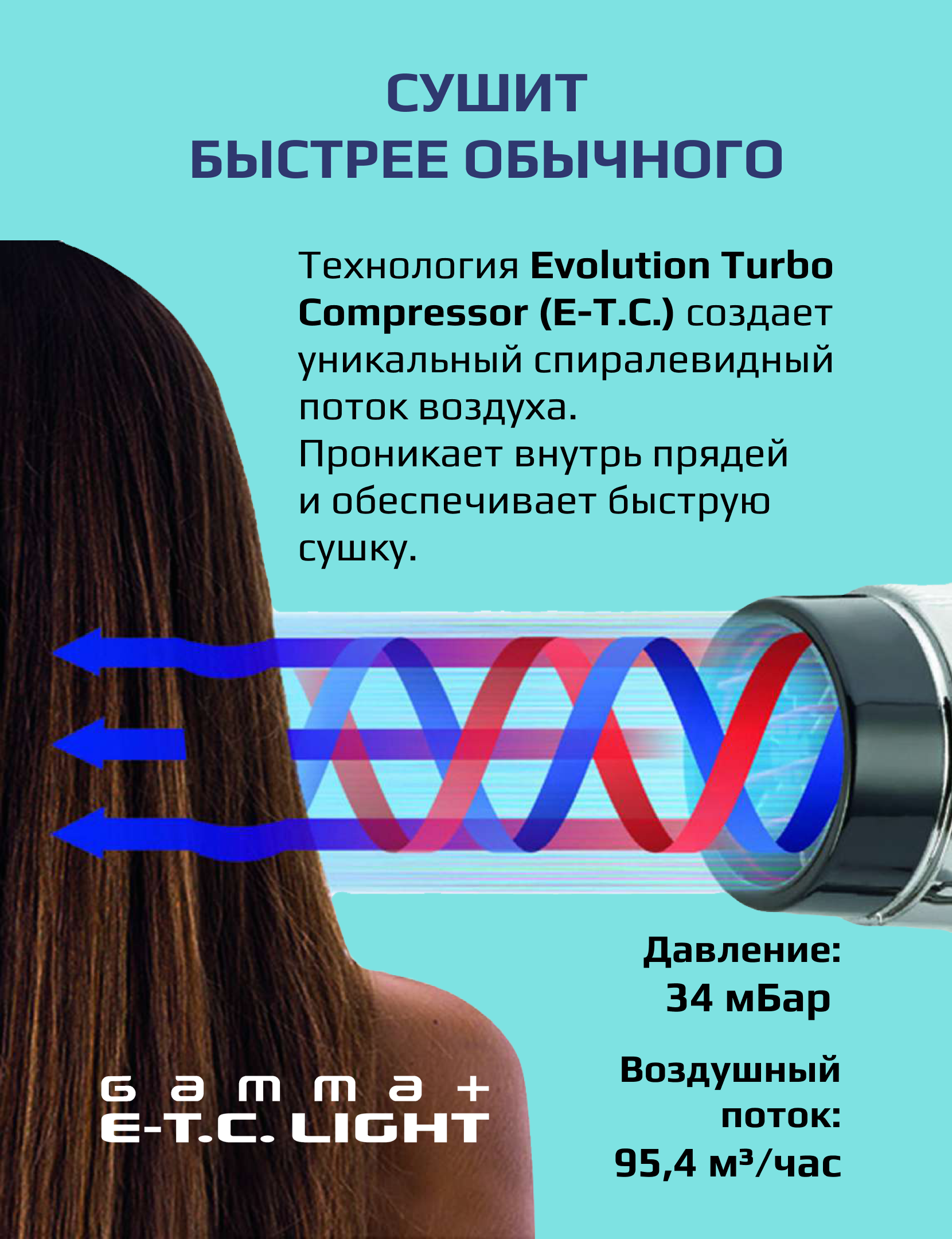 Лучшие цены. Профессиональный фен Gamma Piu ETC Light использует запатентованную технологию увеличения давления и скорости воздушного потока. Магазины в вашем городе.