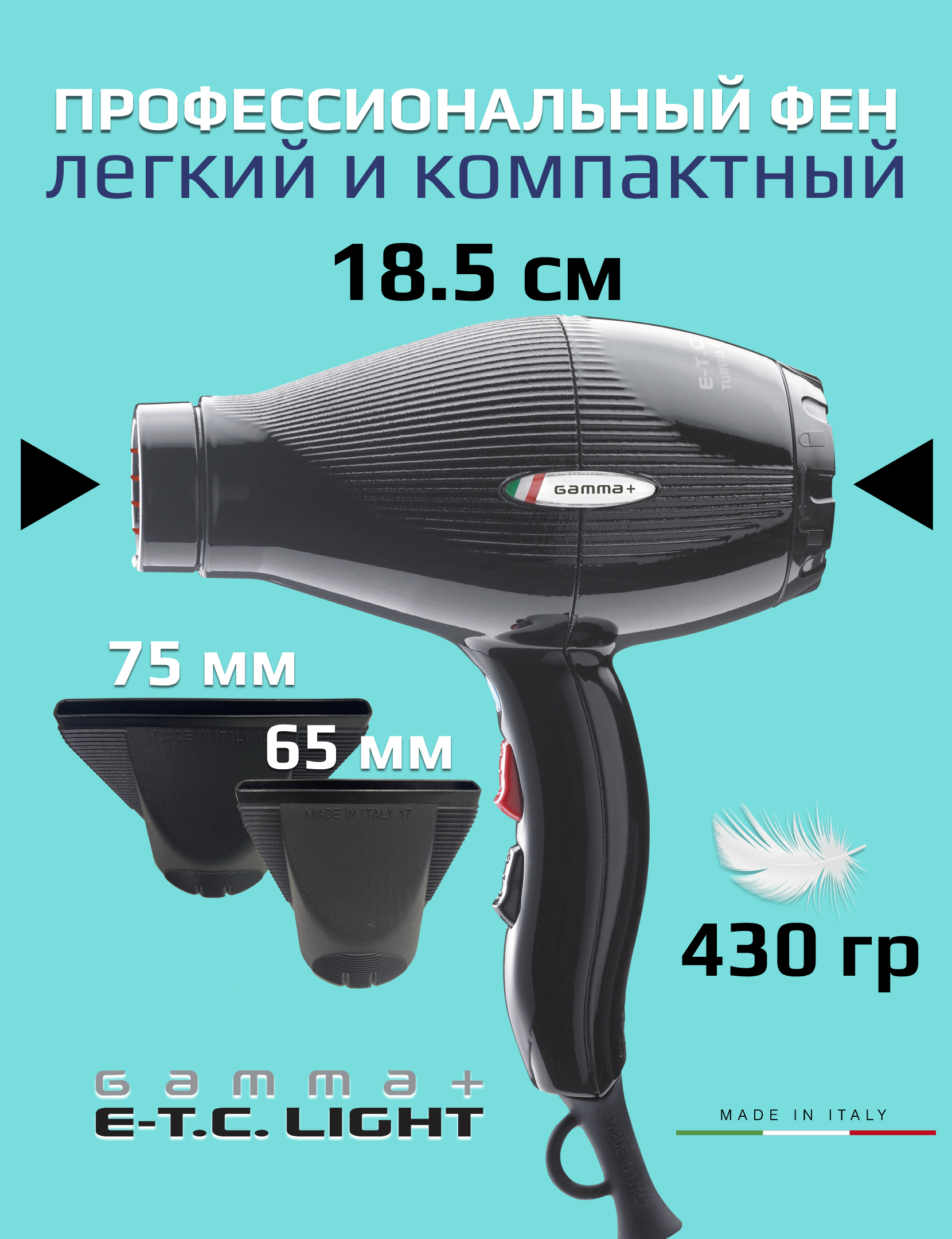 GAMMA PIU SRL Фен профессиональный E-T.C. Light 2100Вт черный Gamma PIU SRL