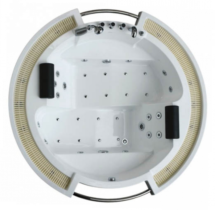 Лучшие цены. Тип: Акриловые ванны Высота с опорой, см: 90 Вес, кг: 172 Материал: акрил Вид установки: встраиваемая Цвет: белый Длина: 210 Система гидромассажа: есть, уже установлена Управление: пульт ДУ / электронное Ширина, см: 210 Зона гидромассажа: гидромассаж спины / гидромассаж ног / гидромассаж боковой Форма: круглая Диаметр слива, см: 5.2 Глубина, см: 80 Угловая конструкция: нет Стилистика дизайна: hi-tech Расположение перелива: по центру Форсунок для спинного массажа: 9 Форсунок для бокового массажа: 4 Форсунок. Магазины в вашем городе.