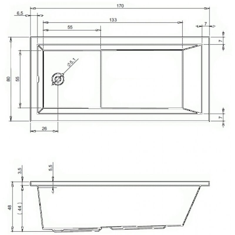 Ванна акриловая RIHO LUSSO PLUS 170x80 без гидромассажа, прямоугольная