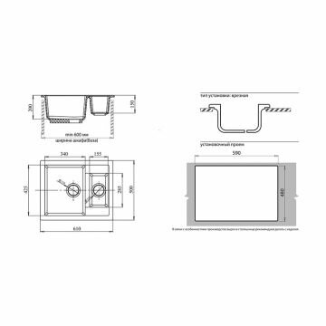 Мойка GRANFEST GF-Q610K 1,5 чаши 610*500 мм (серый - 310)