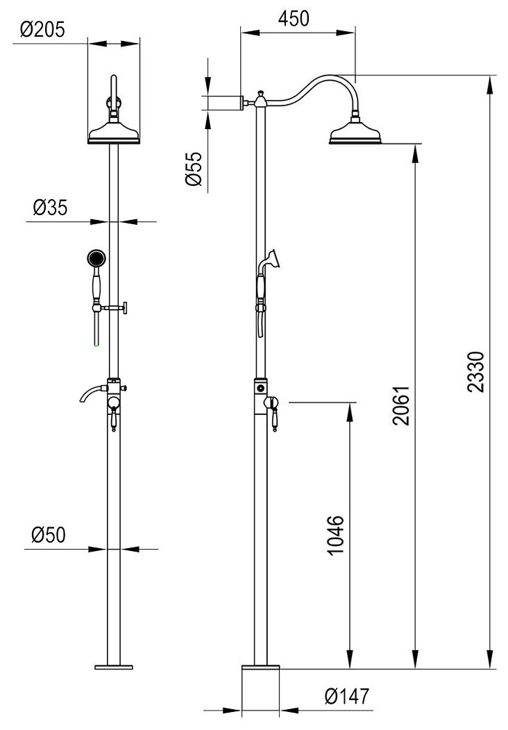 Лучшие цены. высота: 233 см Латунь Размер верхнего душа: 20.5 см Вылет верхнего душа: 45 см размер лейки: 10.8 см Лейка с 1 режимом струи Металлический шланг С керамическим картриджем Совместимость с проточным водонагревателем оснащение: держатель для душа / душевая лейка / душевой шланг Гарантия: 5 лет Финляндия. Магазины в вашем городе.