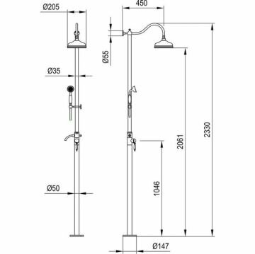 | Комплектация | лейка / верхний душ / смеситель / стойка / штанга / душевой шланг / крепление лейки |