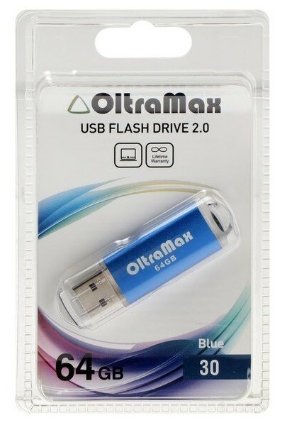 USB-накопитель (флешка) OltraMax Drive 30 64Gb (USB 2.0), синий