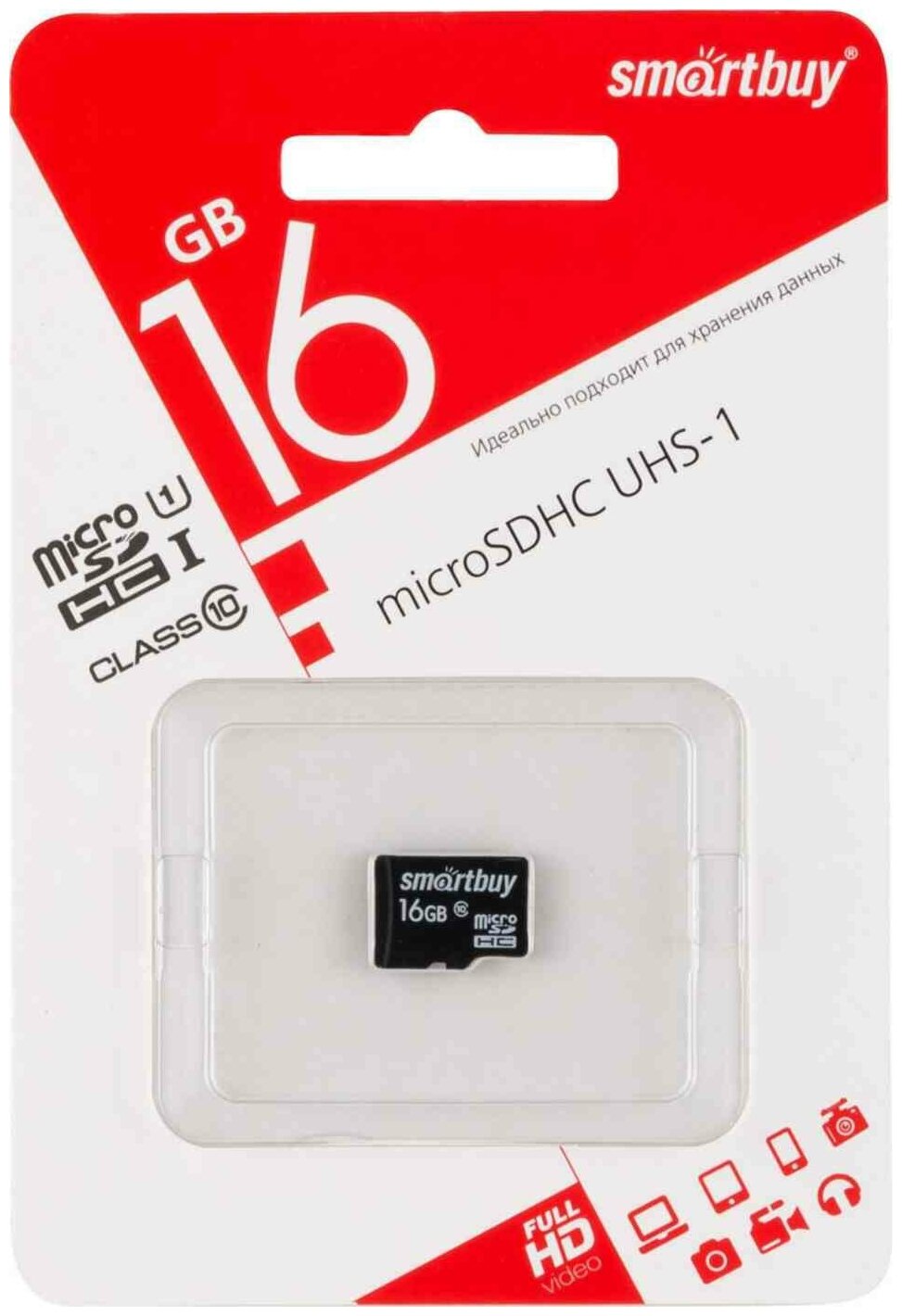 micro SDHC карта памяти Smartbuy 16GB Сlass 10 UHS-I (без адаптеров)