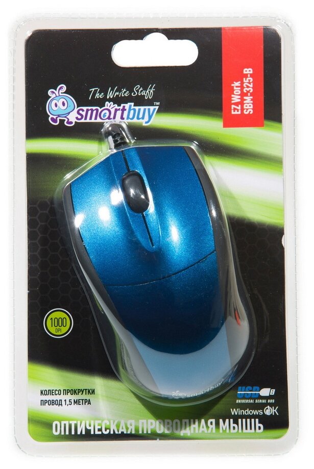 Мышь проводная Smartbuy 325 USB/DPI 1000/3 кнопки/1.5м синяя (SBM-325-B)