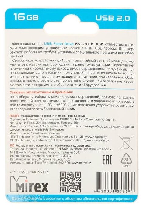 Флешка 16 ГБ USB Mirex Knight Black