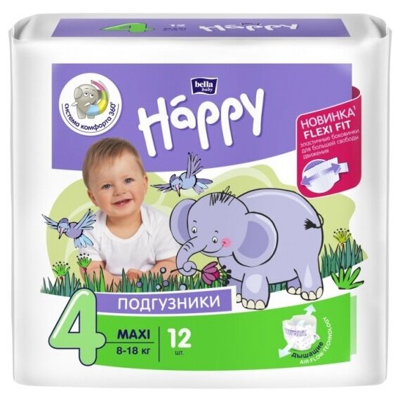 Подгузники для детей bella baby Happy Maxi дышащие, размер 4 (вес 8-18 кг), 12 шт.
