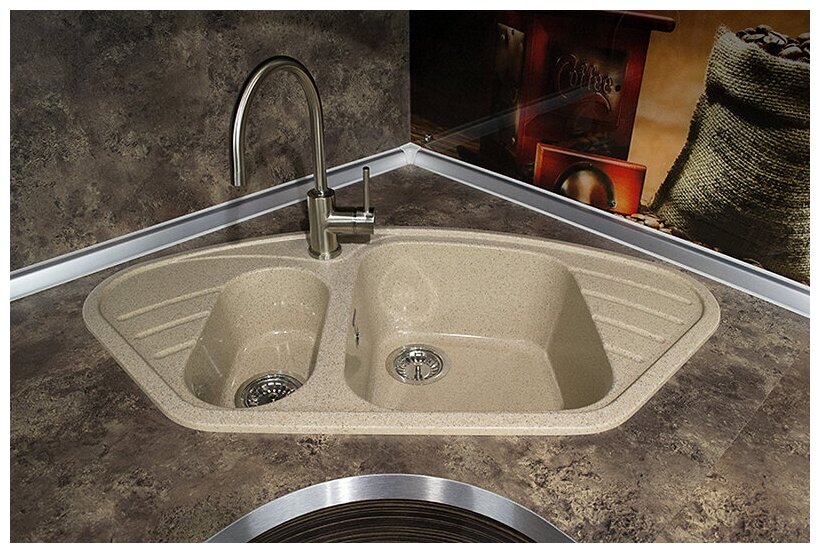 Лучшие цены. 960 CORNER GF-C--960E угл 960*510 песочный Размер чаши, мм: 346*400*200, 168*320*140 Материал: мрамор Установка измельчителя отходов: да Оснащение: сифон, гарантийный талон. Магазины в вашем городе.