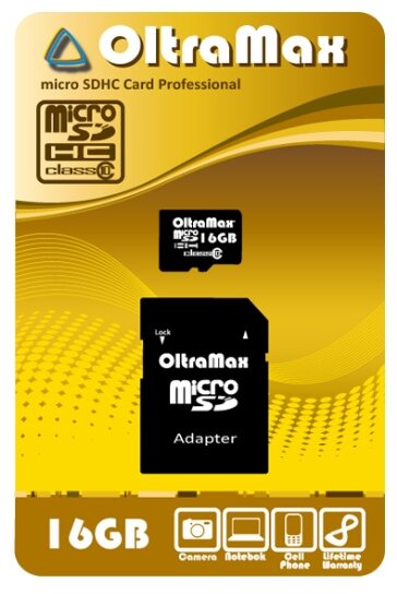 Карта памяти Карта памяти micro SD OLTRAMAX 16 GB с адаптером OM016GCSDHC10