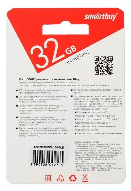Карта памяти SmartBuy microSDHC (32 GB) 10 класс + адаптер SD 890 ₽ Подробнее