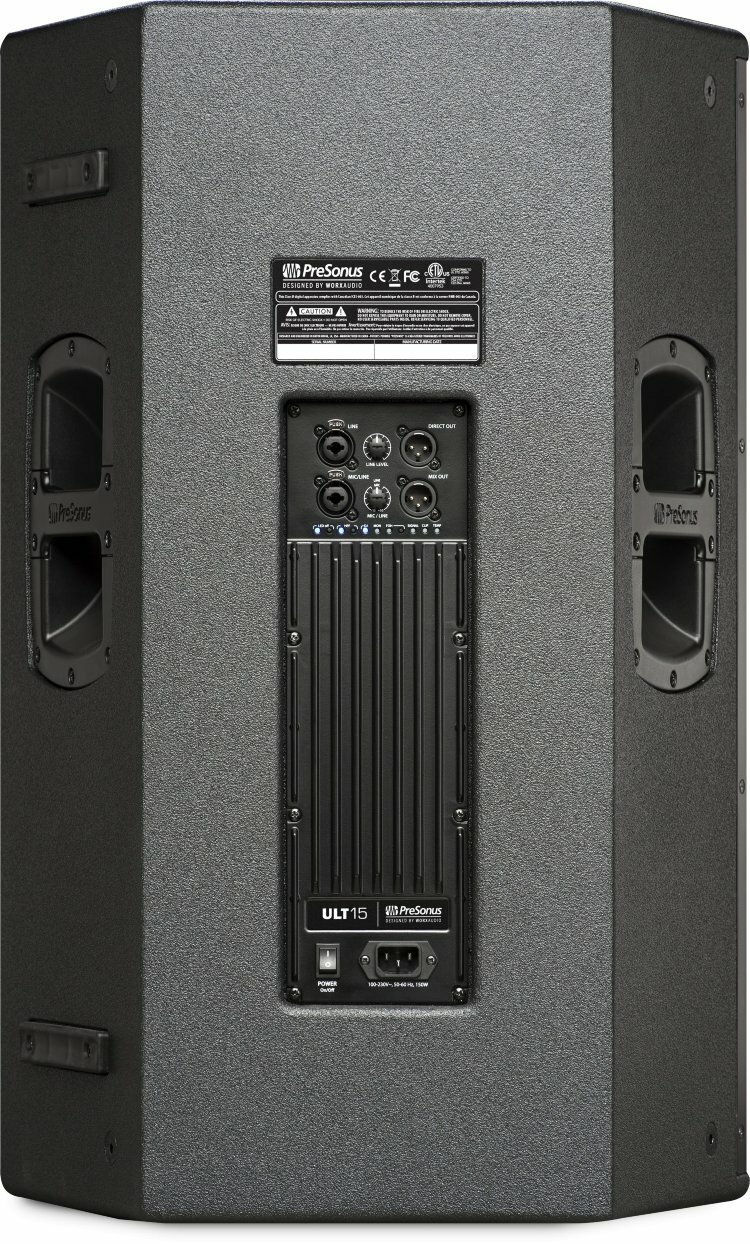 Лучшие цены. PreSonus ULT15 2-х полосная активная акустическая система 15" (2.5" катушка) + 1.75", 1300 Вт пик, рупор Pivot 110° x 50°, 52 Гц -18 кГц, 136 дБ SPL. Двухполосная полнодиапазонная модель ULT15 разработана как для мобильного использования, включая работу в турах, так и для постоянных инсталляций. Система активной акустики изготовлена в надежном корпусе из березовой фанеры. Предусмотрено стойкое покрытие Chemline из полиуретана, ручки под транспортировку и 12 точек подвеса (M10). Магазины в вашем городе.