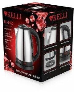 Лучшие цены. Чайник Kelli KL-1455 быстро вскипятит для вас воду, после чего автоматически выключится. Он вмещает в себя 1.8 л воды, а за счет высокой мощности вы получите готовый кипяток достаточно быстро. Такого объема хватит на большую компанию. Для безопасного использования предусмотрено автоматическое отключение при недостаточном количестве воды. Корпус из нержавеющей стали. Автоматическое отключение. Поворачивающийся корпус на 360. Закрытый нагревательный элемент. Защита от перегрева. Световой индикатор включения. Магазины в вашем городе.