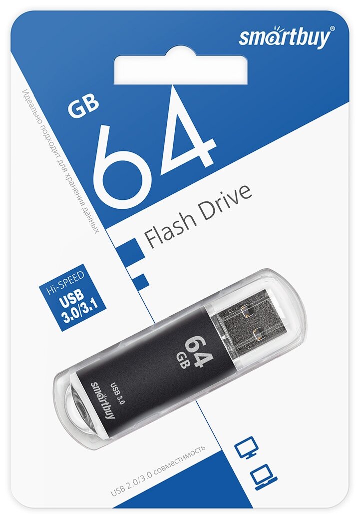 Флешка SmartBuy V-Cut USB 3.0/3.1 64 ГБ черный