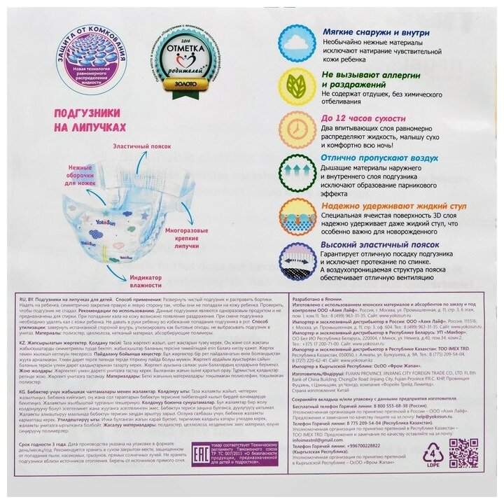 YokoSun подгузники размер L (9-13 кг) 54 шт