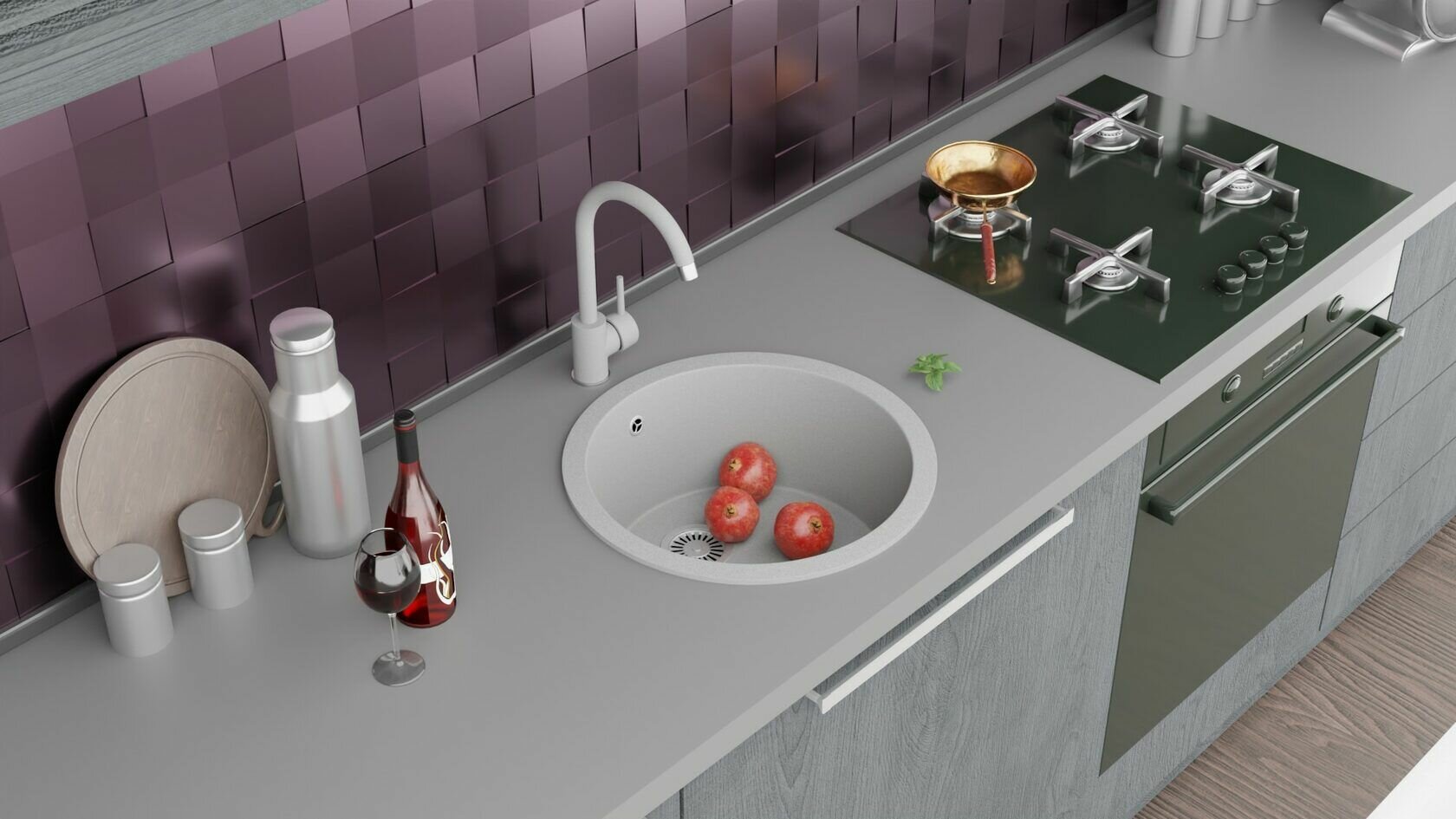 Мойка для кухни TOLERO Classic R-104 круглая каменная Кварц с возможностью нижней подклейки (№001 Серый металлик)