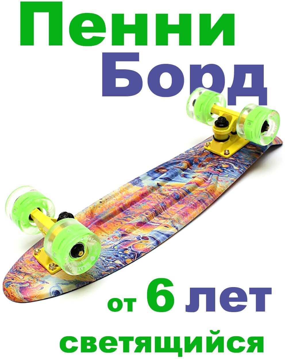 Скейтборд пластиковый (пенни борд) для детей и взрослых с принтом и светящимися колесами Triumf Active Space (космос) 22 дюйма