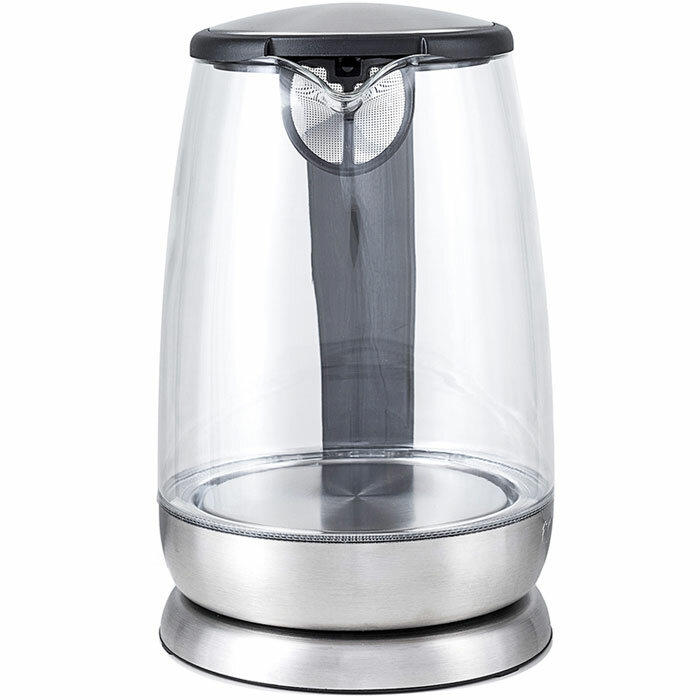 Чайник электрический Kitfort КТ-619, 1.7 л, 2200 Вт, серебристый/черный, нержавеющая сталь/стекло