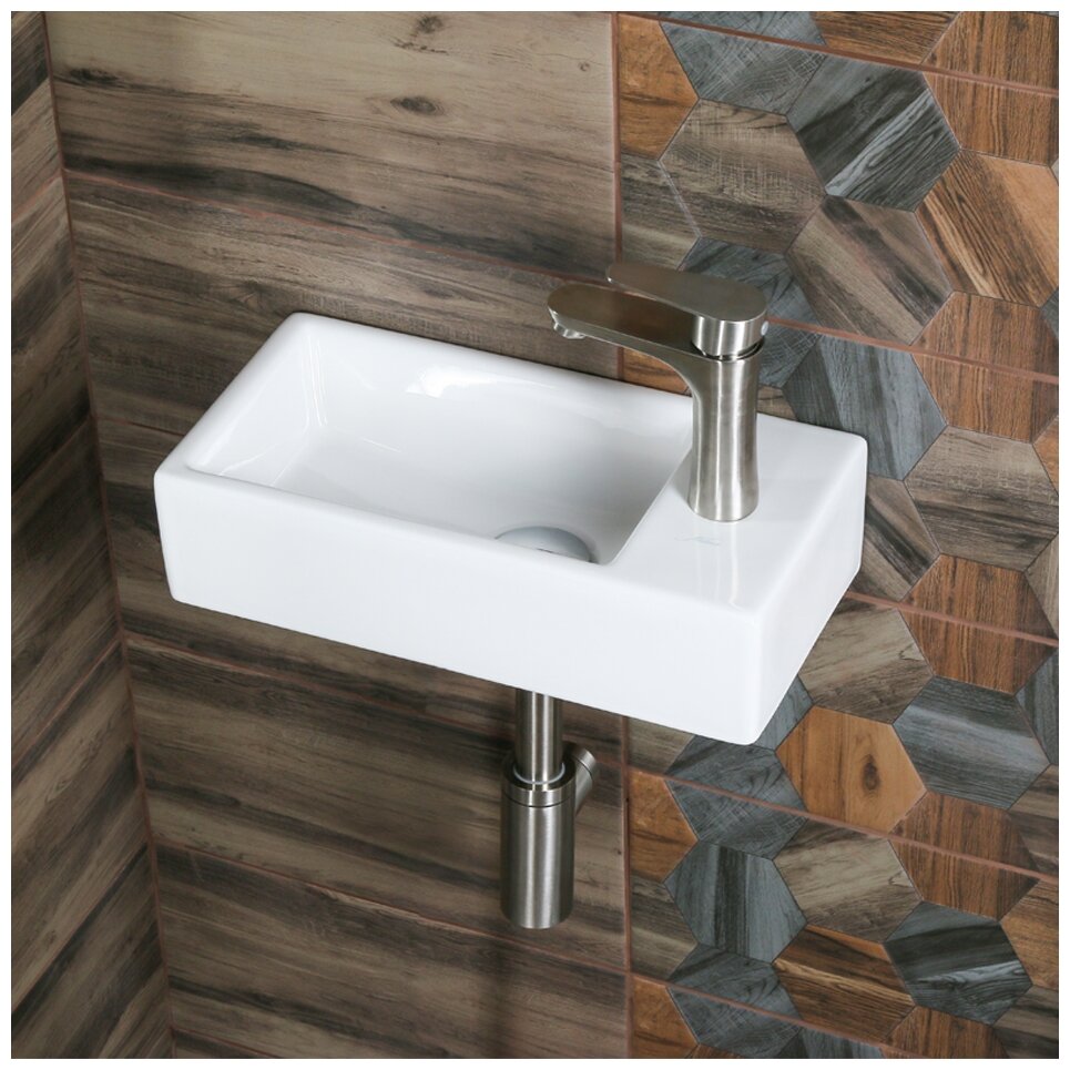 Лучшие цены. Характеристики: Дизайн: современный стиль; Диаметр слива (см): 4.5; Цвет: белый; Форма: прямоугольная; Материал: фаянс; Намеченные отверстия под смеситель: нет; Монтаж: к стене, к столешнице; Угловая конструкция: нет; Готовые отверстия под смеситель: 1; Слив-перелив: установка невозможна; Ориентация: правая; Асимметричность: да; Расположение смесителя: справа; Возможность установки над стир. машиной: нет; Донный клапан: приобретается отдельно; Высота (см): 10.5; Ширина (см): 40.5; Вес брутто (кг). Магазины в вашем городе.