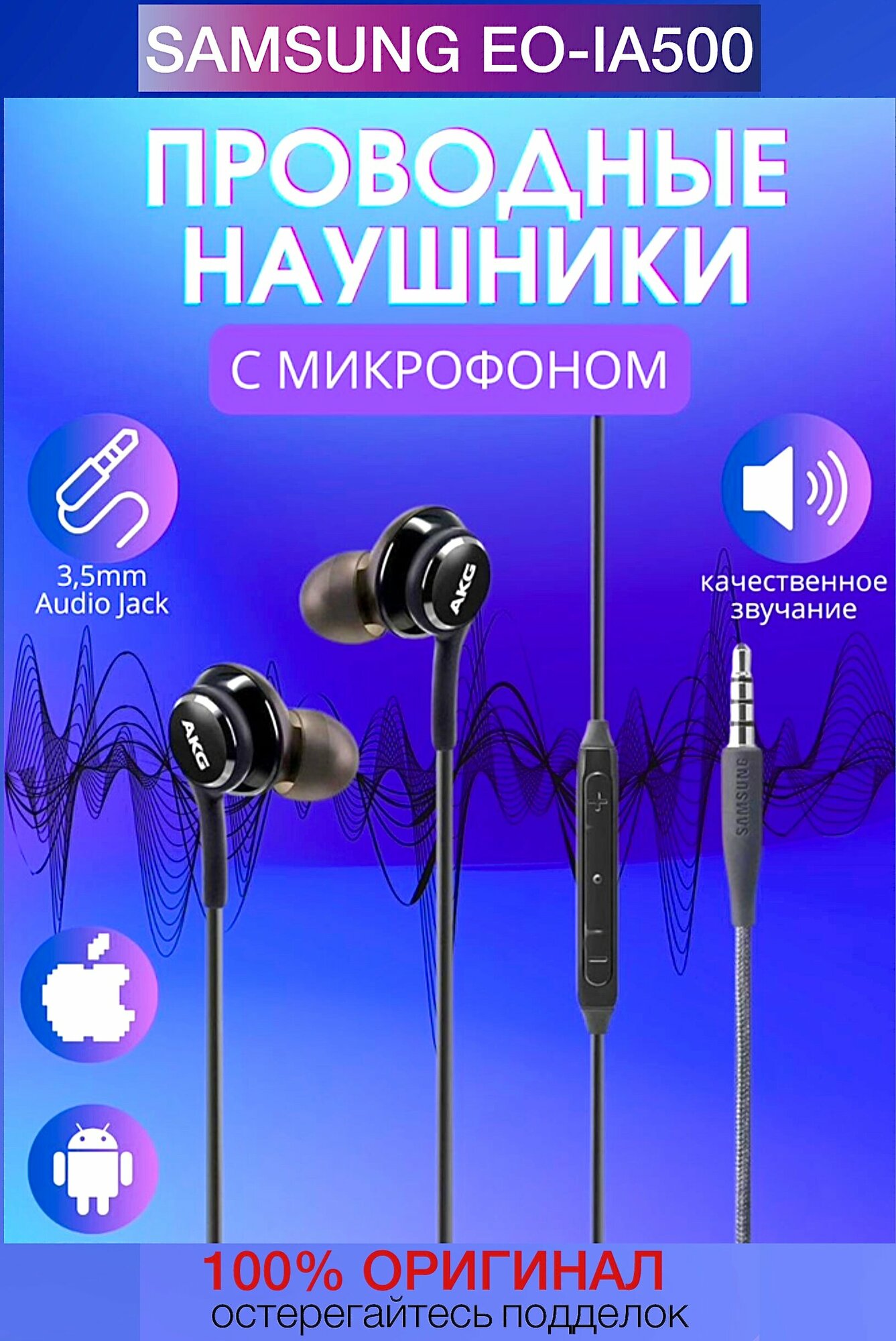 Наушники Samsung проводные, 3.5 мм, EO-IA500, черный