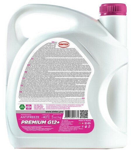 Лучшие цены. Карбоксилатный антифриз Sintec ANTIFREEZE PREMIUM G12+ (-40) изготовлен по новейшей технологии органического синтеза из этиленгликоля высшего сорта и импортного пакета функциональных присадок. Не содержит нитритов, нитратов, аминов, фосфатов, боратов и силикатов. Изготовлен по новейшей технологии органического синтеза из этиленгликоля высшего сорта и импортного пакета функциональных присадок. Не содержит нитритов, нитратов, аминов, фосфатов, боратов и силикатов. Магазины в вашем городе.