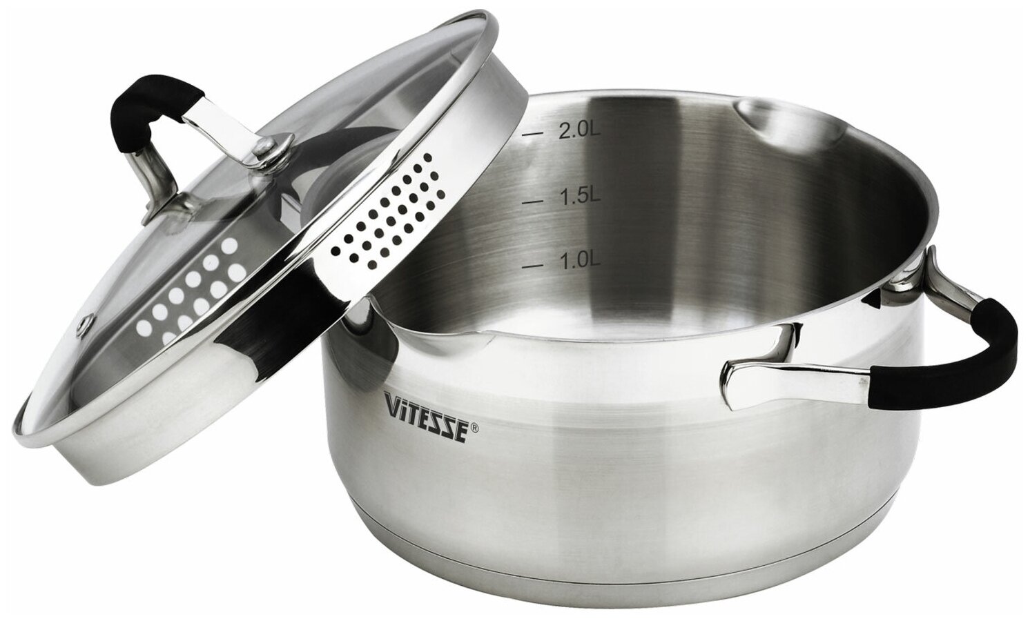 Лучшие цены. Диаметр, см - 16 Объем, л - 1,6 Материал корпуса - нержавеющая сталь 18/10 Дно - многослойное термоаккумулирующее Полировка - комбинированная Внутренняя градуировка - есть Крышка - из термостойкого стекла с паровыпуском и отверстиями для слива Ручки - из нержавеющей стали 18/10 с силиконовым покрытием Способ крепления ручек - точечная сварка Упаковка - цветной рукав Размер коробки, см - 24,5 х 17 х 12 Вес, кг - 1,1 Особые характеристики Носик для удобного слива жидкости. Магазины в вашем городе.