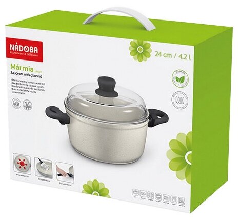 Кастрюля Кастрюля с крышкой Nadoba MARMIA, с антипригарным покрытием, 24 см, 4.2 л