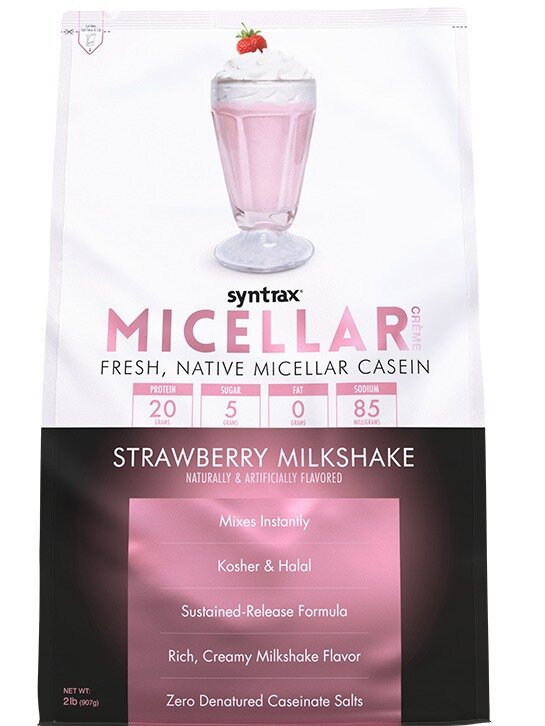 Казеиновый протеин SYNTRAX Micellar Creme 907 г, Молочный коктейль с клубникой