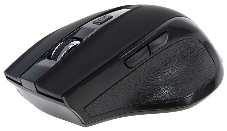 Лучшие цены. Цвет: чёрный; Подключение к компьютеру: USB + радиоканал; Стандарт беспроводной связи: Радиоканал; Количество кнопок: 6 кнопок; Подсветка: нет; Питание: 2xAAA; Ресурс аккумуляторов: н/д; Индикаторы: н/д; Длина кабеля: без кабеля; Вес: 50; Прочее: Беспроводная мышка 2.4GHZ, Soft-touch покрытие, 6 удобных кнопок, Разрешение сенсора 800/1000/1200/1600 DPI, Нано-ресивер, легкое подключение, Автоматическое отключение питания, функция сна, Долгий срок службы кнопок:до 10 миллионов нажатии, Совместимость с ОС. Магазины в вашем городе.