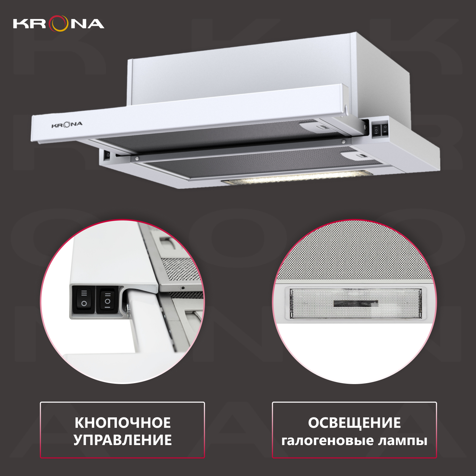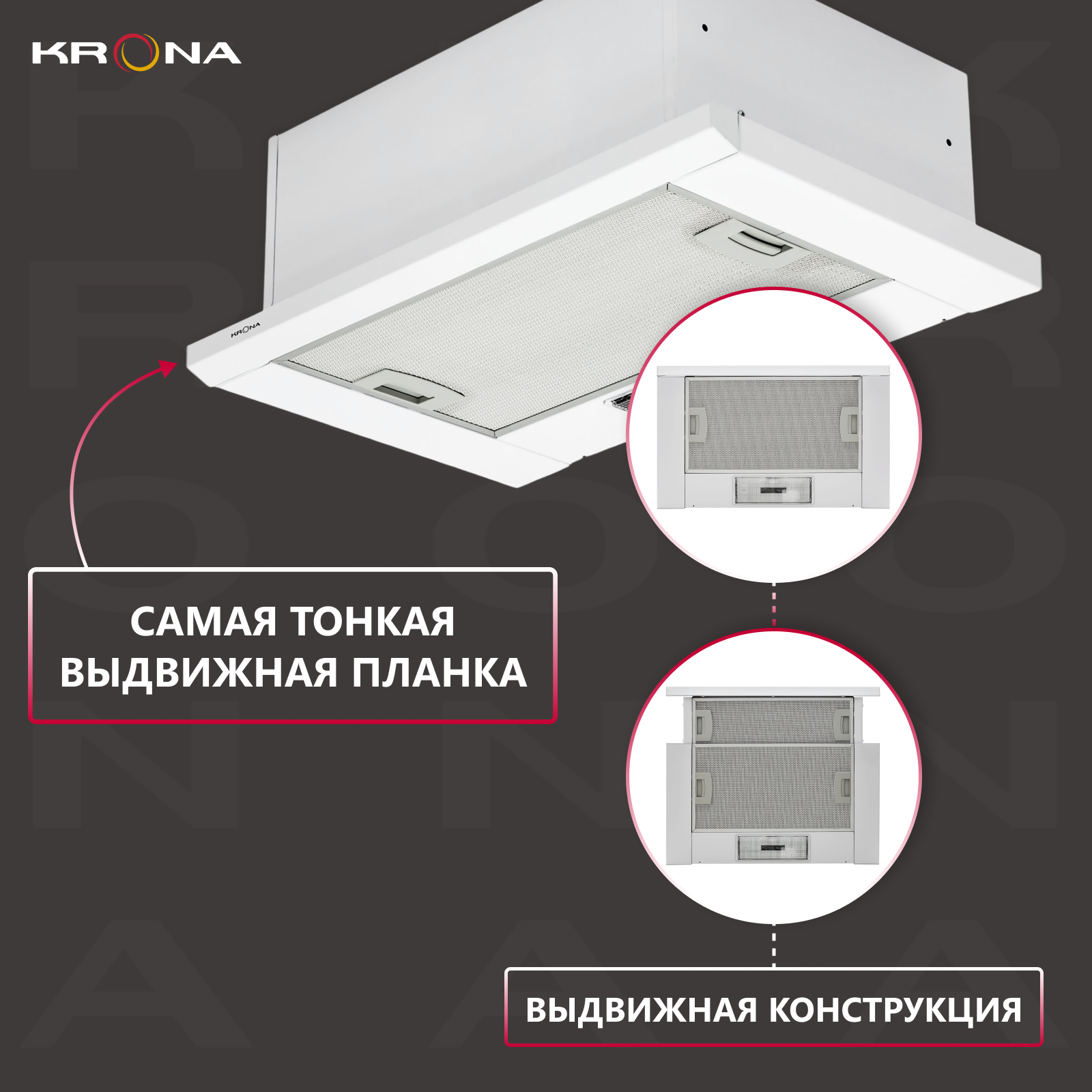 Вытяжка встраиваемая Krona Kamilla 500 slim белый управление: кнопочное (1 мотор)